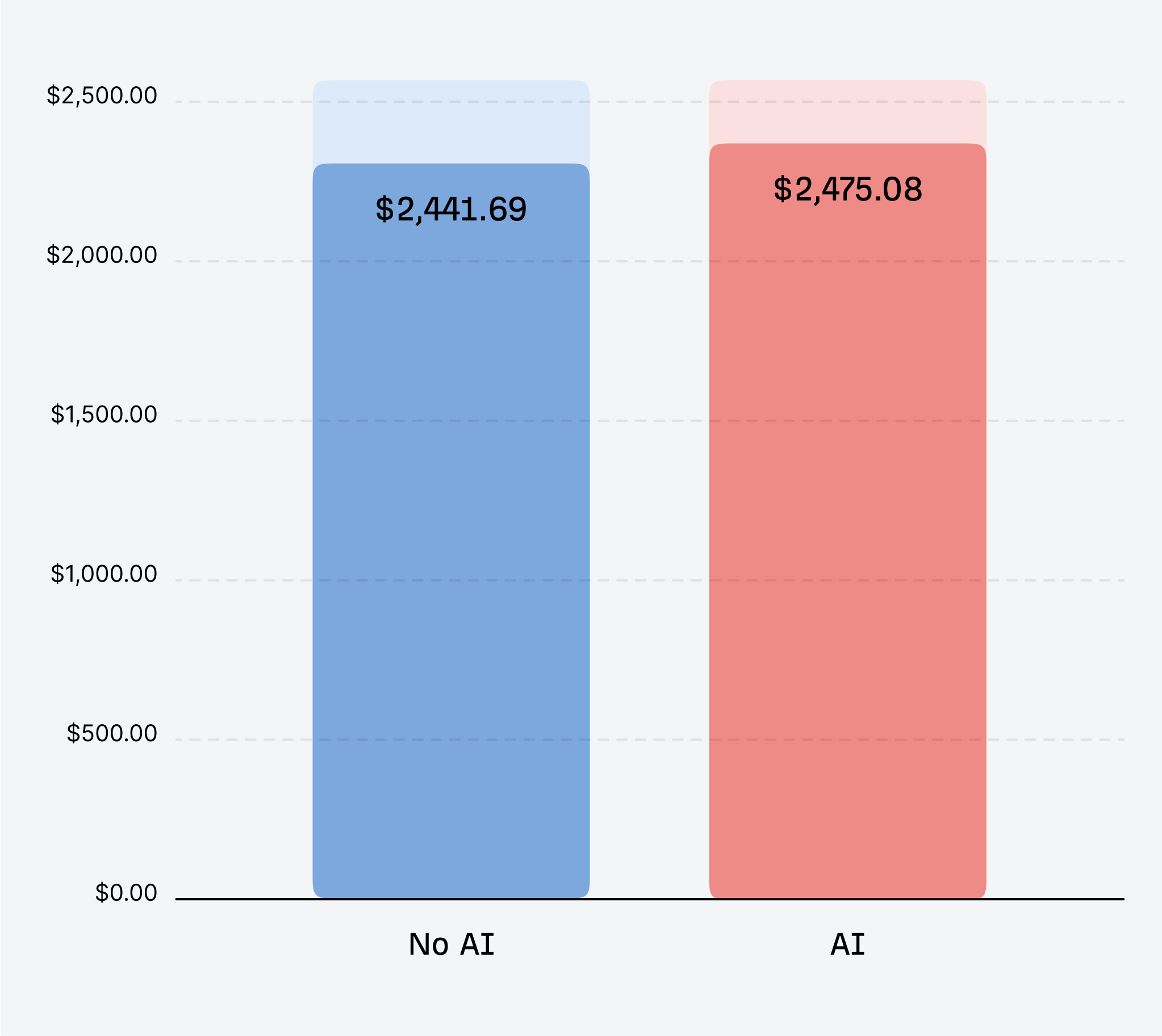 Monthly content marketing spend remains the same regardless of AI use. AI is being used to stretch the same budget farther, not unlock new and exciting forms of customer acquisition.
