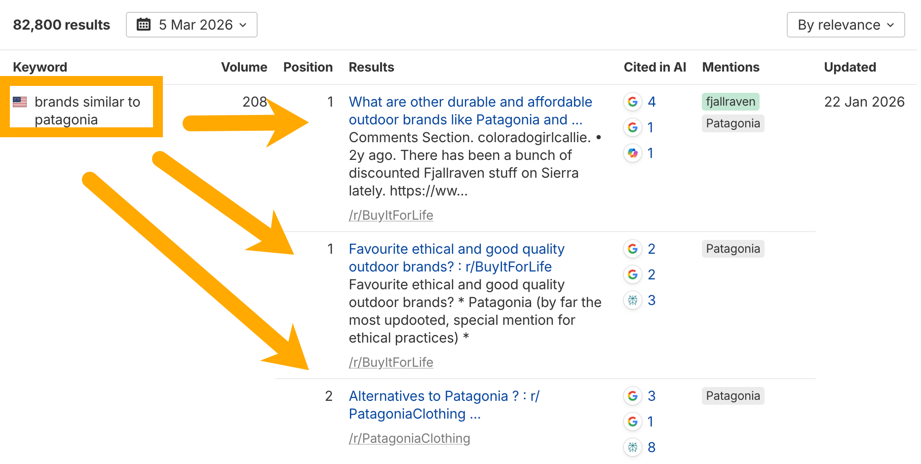 And see the specific Reddit threads where your brand (and your competitors) are mentioned: